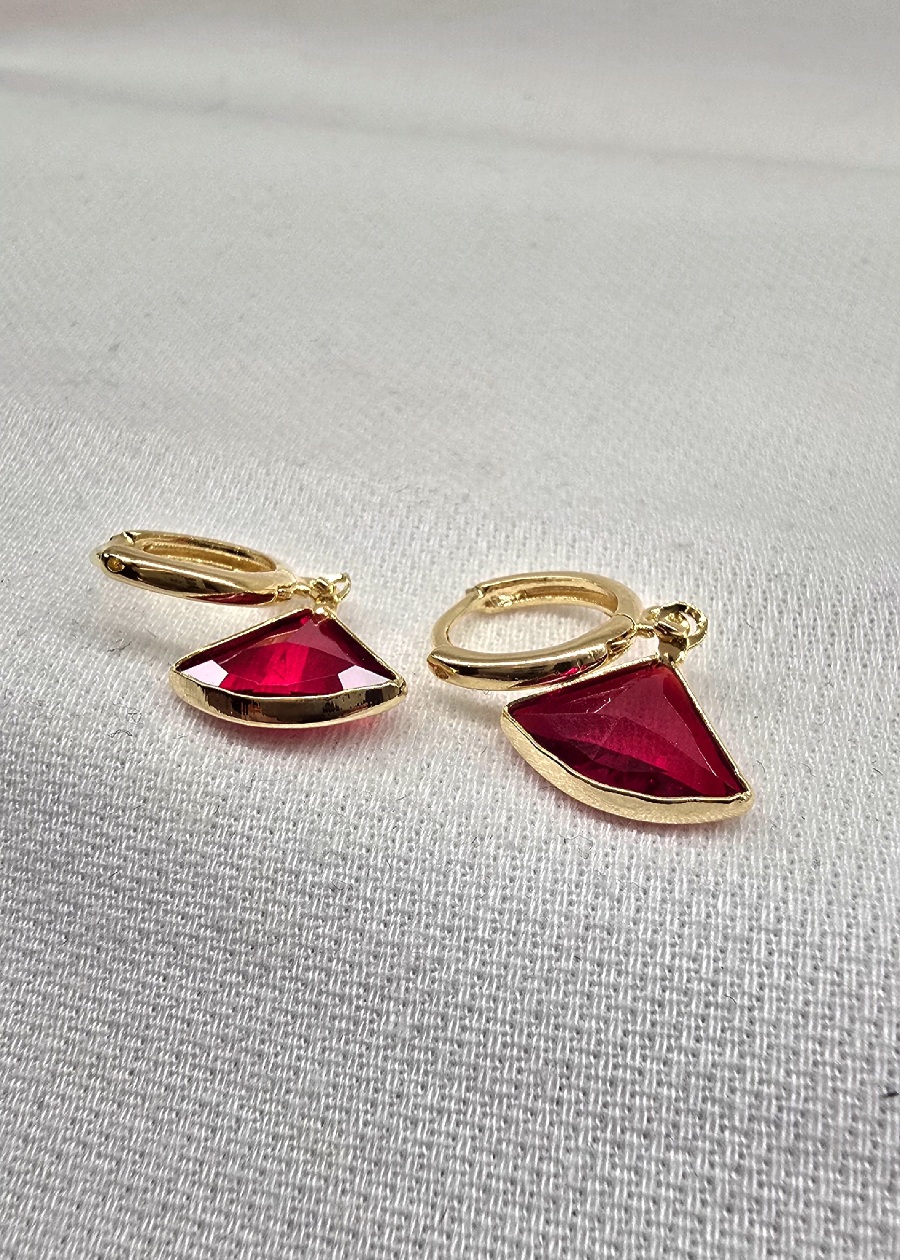 Brinco Argola com Pingente de Pedra Vermelha no Banho de Ouro 18k – 2,5 cm
