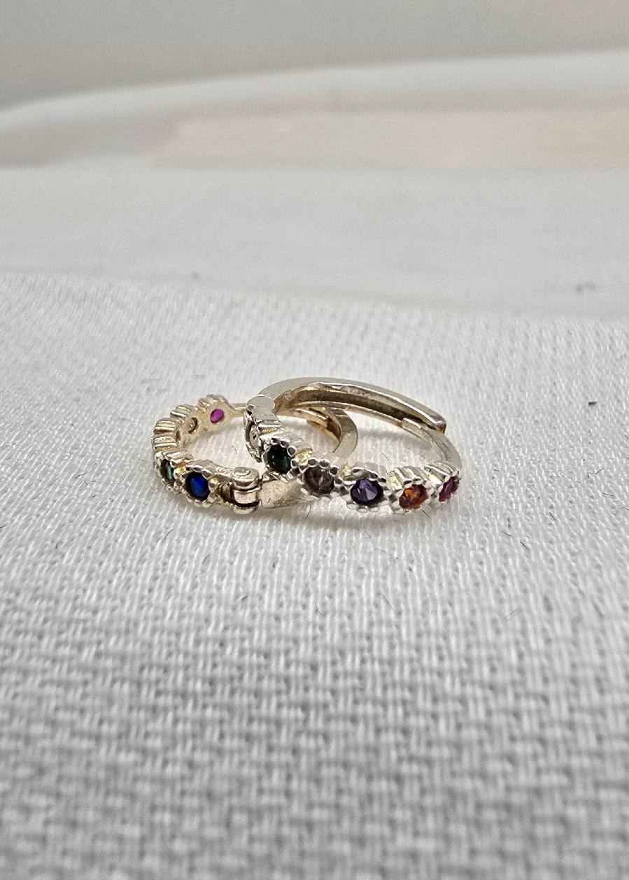 Brinco Argola com Zircônias Coloridas em Prata 925 – 1,0 cm