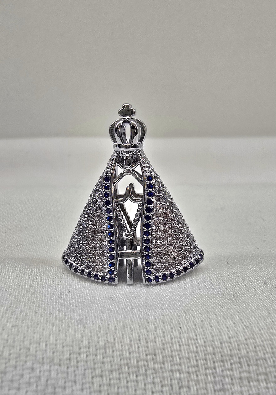 A sua fé iluminada com muita delicadeza e amor. Este lindo pingente de Nossa Senhora Aparecida, rico em detalhes cravejados, traz proteção e um brilho super especial para o seu dia a dia. Uma joia muito acolhedora e elegante, perfeita para carregar a sua devoção sempre pertinho do coração.