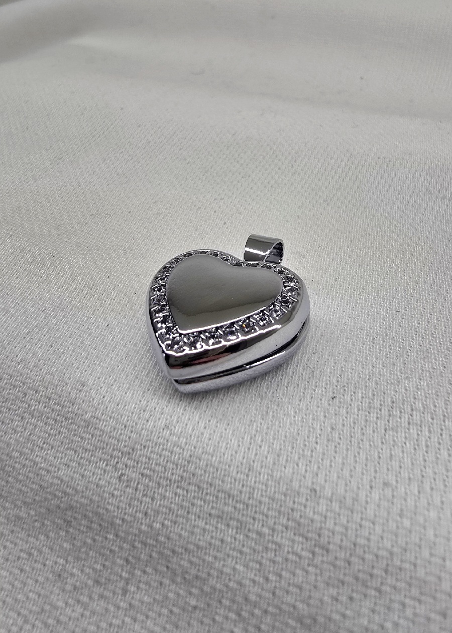 Guarde suas memórias com muito brilho e sofisticação. Este lindo relicário em formato de coração possui uma borda elegantemente cravejada em zircônias, iluminando a peça e destacando a foto de quem você mais ama. Uma joia acolhedora e cheia de significado, disponível no Banho de Ouro 18k ou Ródio Branco.