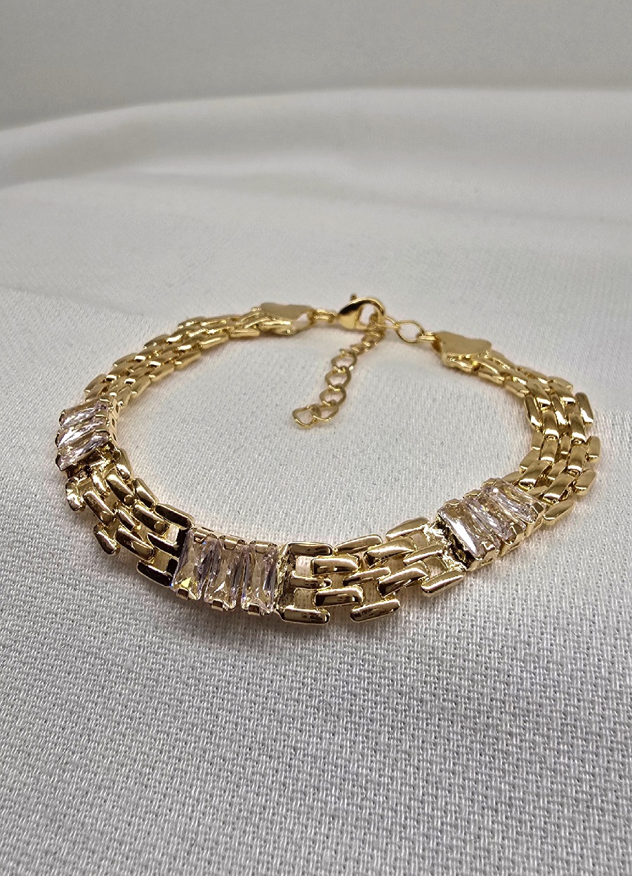 Pulseira larga com zirconia banho ouro 18k – 17cm e 5cm de extensor