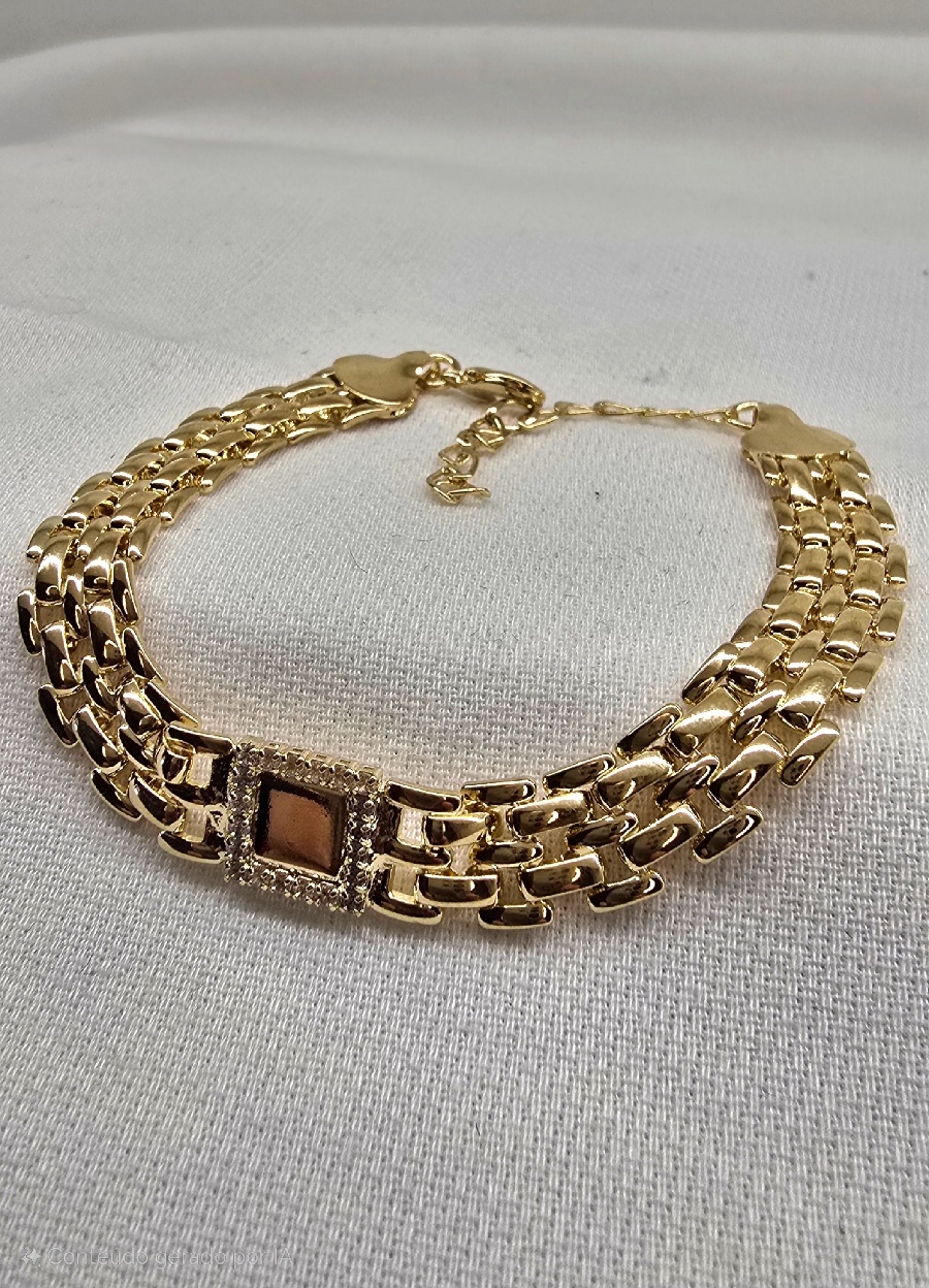 Pulseira larga com zirconia banho ouro 18k – 17cm e 5cm de extensor