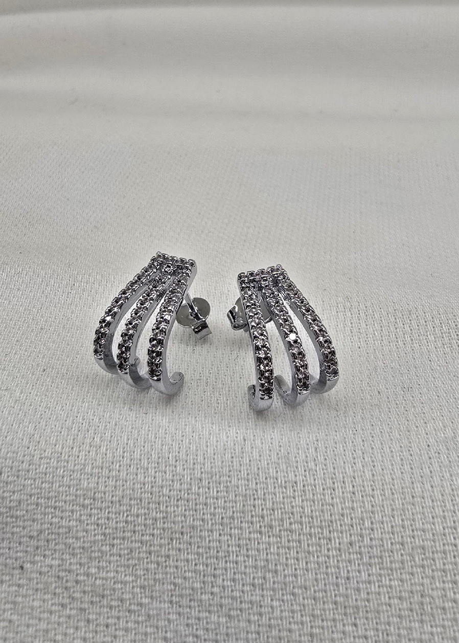 Brinco Meia Argola Cravejada com Zircônias no Ródio – 1,5 cm